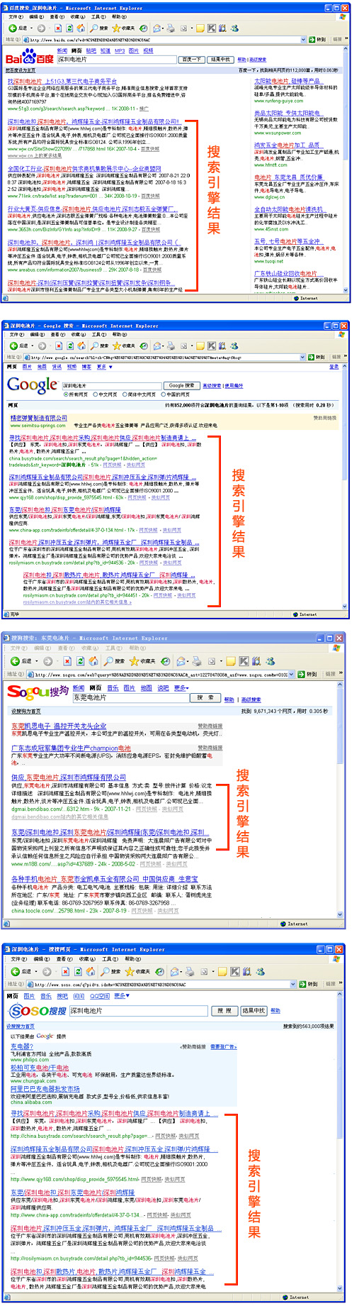 一、以下是用關鍵字:“深圳電池片”“東莞電池片”在各大搜索引擎的搜索效果。